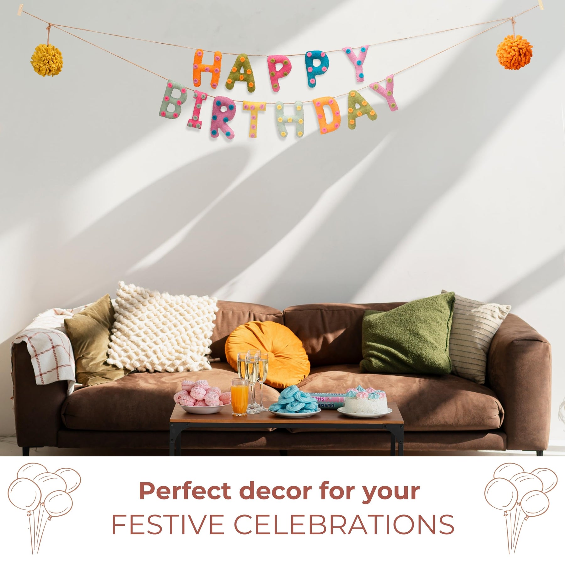 Folkulture Felt Garlands 72" - Happy Birthday