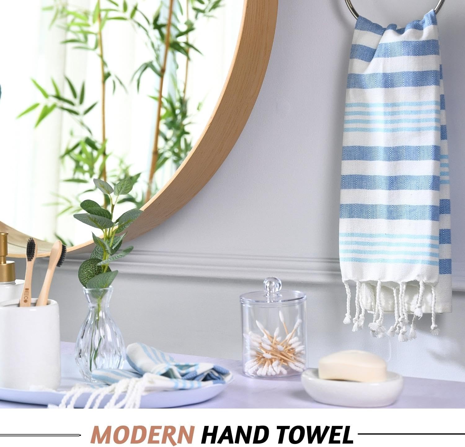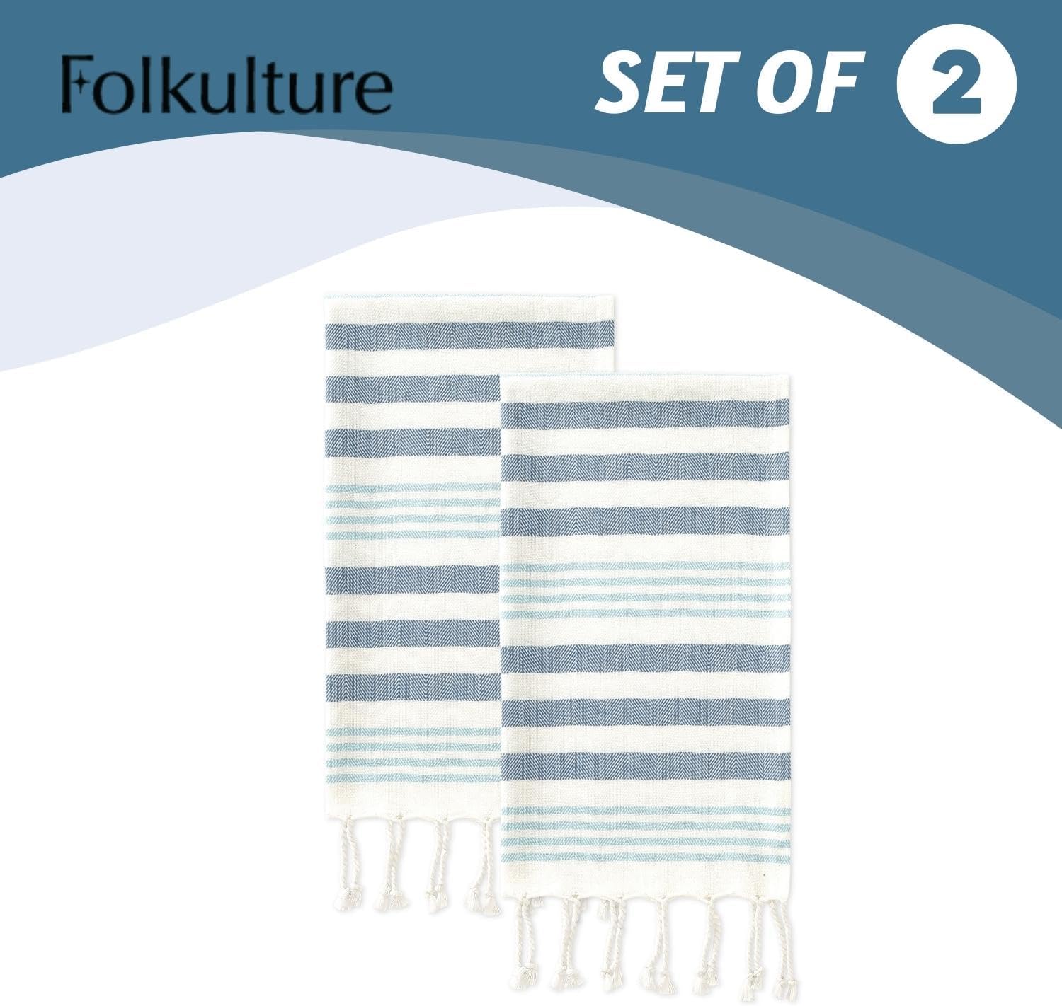 Enhance the Look of Your Kitchen or Bathroom with Folkulture's boho hand towels for bathroom. A hand towel is an essential item you use almost every day, be it drying off dishes in the kitchen, wiping off your hands in the bathroom, or wiping away sweat after a tough day in the gym. That’s why we have created these gorgeous hand towels that make for modern farmhouse bathroom décor and offer an ideal balance of style, softness, absorbency, and luxuriousness that you won’t find in heavy cotton towels or linens. We use 100% recycled cotton which means our boho hand towels are not only softer and more absorbent they actually get softer to the touch after every wash cycle. Each luxury turkish hand towel or decorative towels for bathroom features durable tassels on the edges that give it a more vibrant, high-quality look and feel that really stands out and enhances your personal space. These hand towels for kitchen come in various designs that are simple and elegant with colors such as black, white, blue, and beige. Woven with premium organic cotton, these small hand towels add a decorative touch to your personal spaces and provide versatile use for washing or drying your face and hands, as a tea towel, gym and yoga, and more. Our bath towels feature a unique loomed, or tasseled, look that really enhances the look and feel of your room which makes them a great pairing for modern, farmhouse, or boho decor.