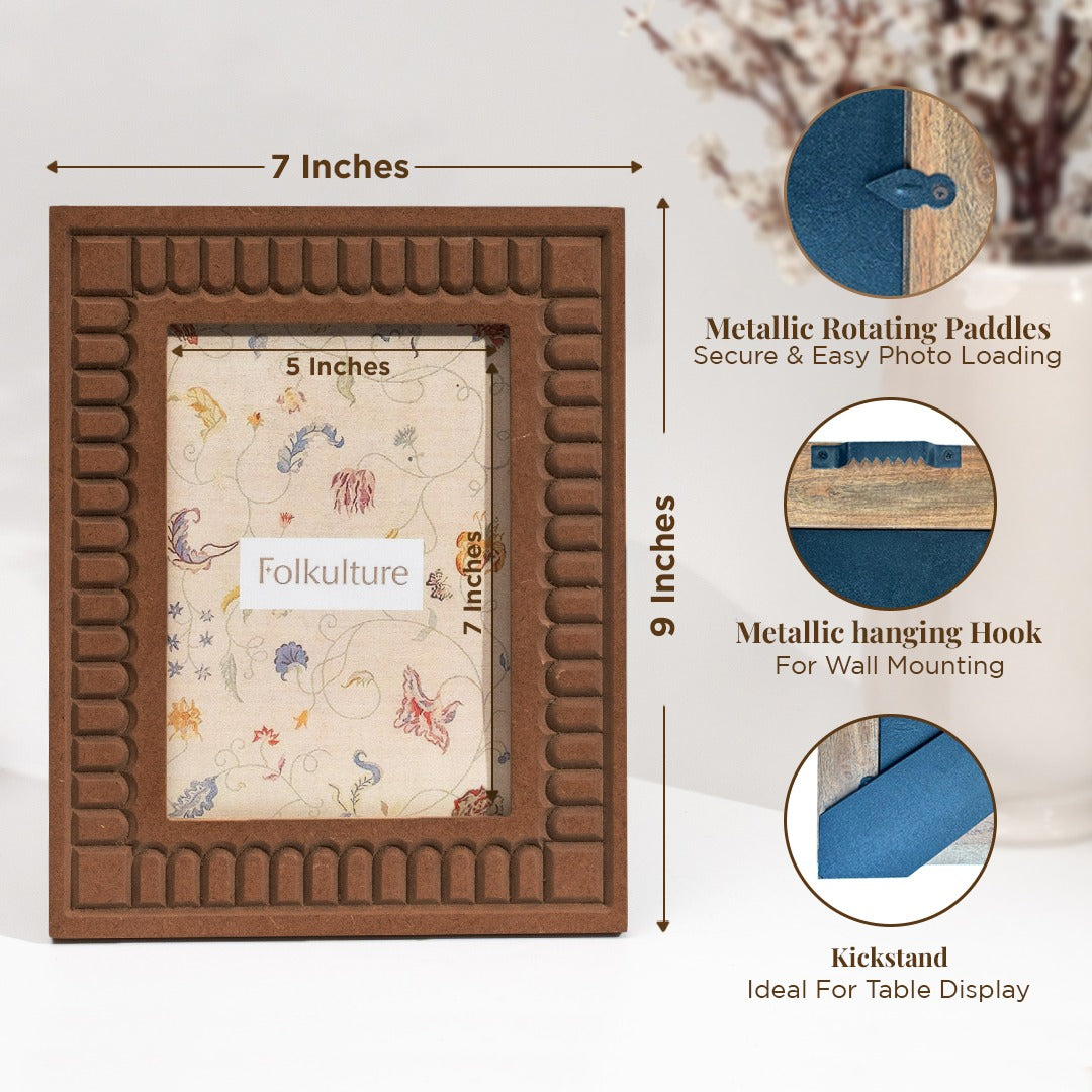 Folkulture has brought a versatile 5x7 picture frame that is the perfect way to display your cherished memories. Crafted from durable MDF, it provides a sturdy and long-lasting home for your favorite photo prints. The timeless design and intricate detailing add a touch of elegance to any room. Whether you're creating a stunning gallery wall frames display or showcasing a single, special moment, this photo frame is a beautiful addition to your home décor. It's also a thoughtful and heartfelt perfect gift for birthdays, holidays, or any occasion.