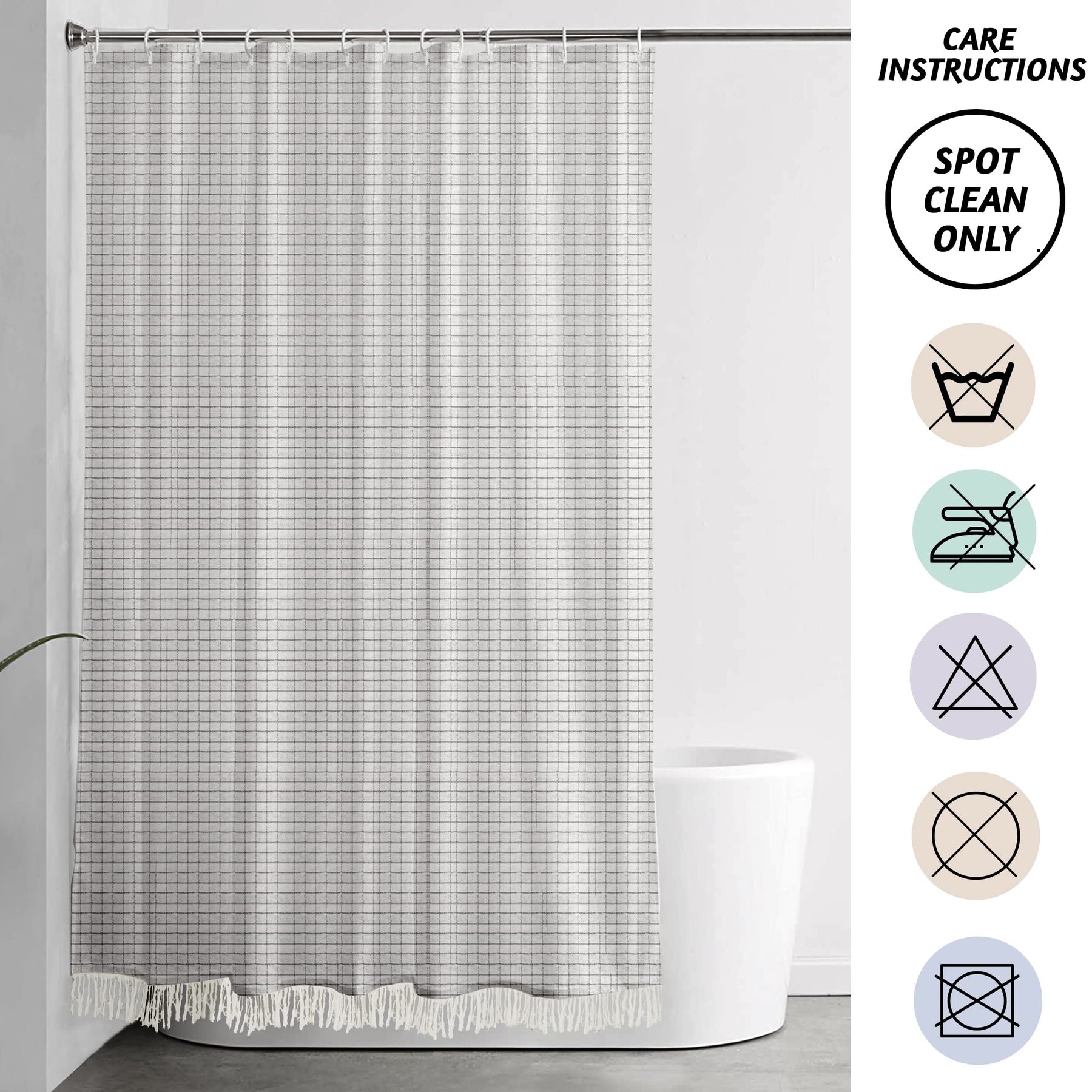 Folkulture Boho Shower Curtain 72" X 72" Water Repellent White Shower Curtain with Tassels, Grey Shower Curtains Recycled Cotton (Tulum Gray)
