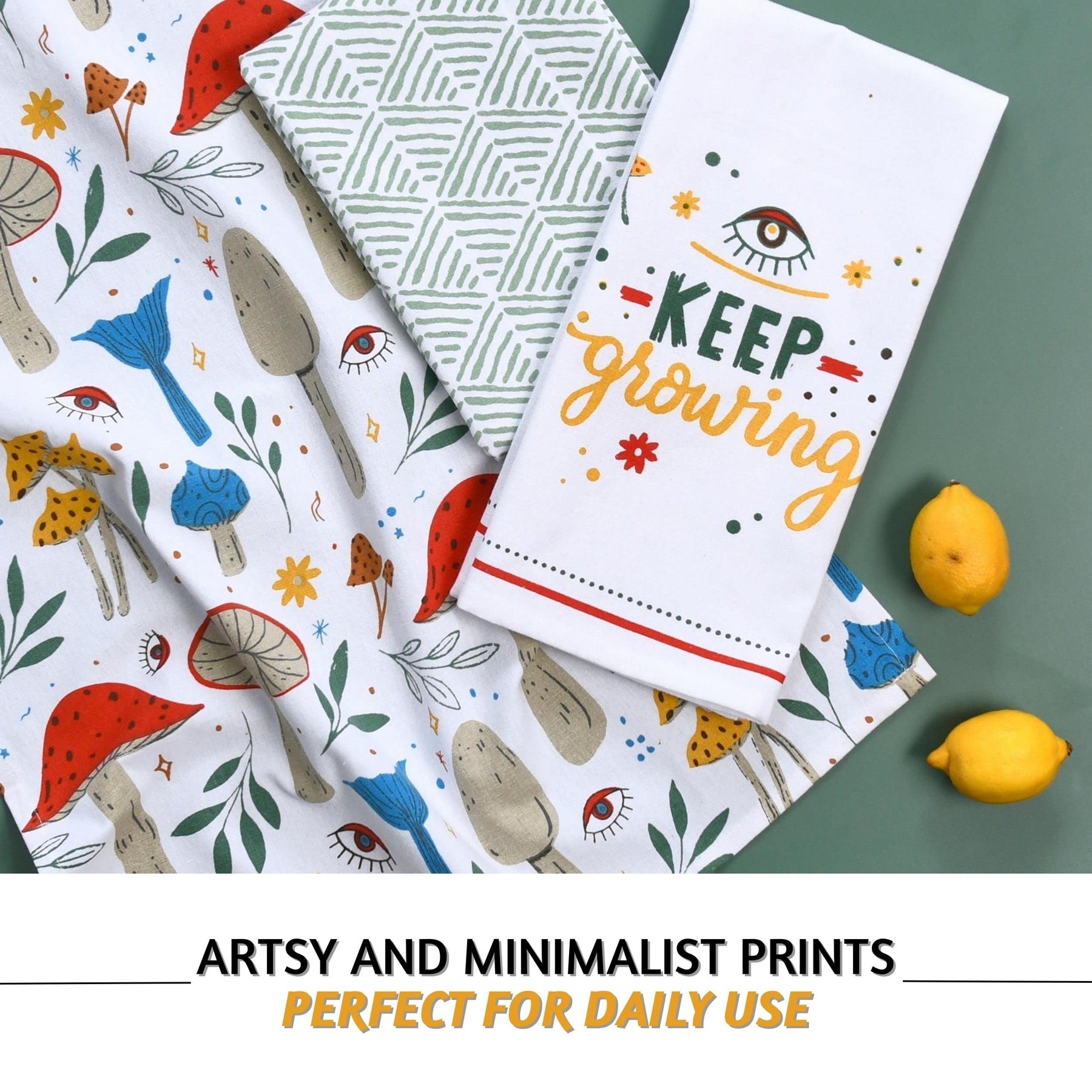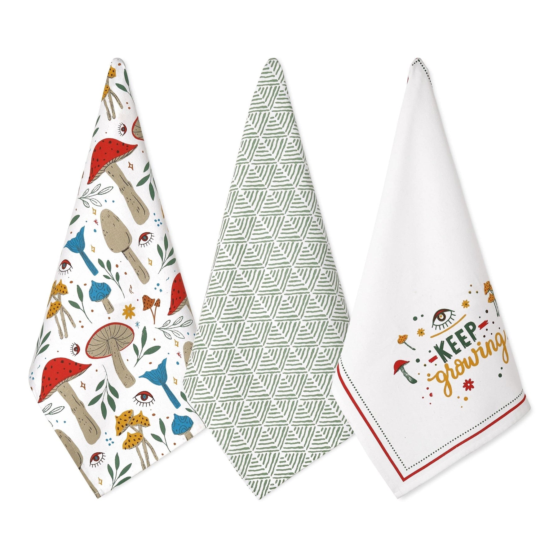 Folkulture Set of 3 - Kitchen Towel 100% Recycled Cotton Magic Mushroom