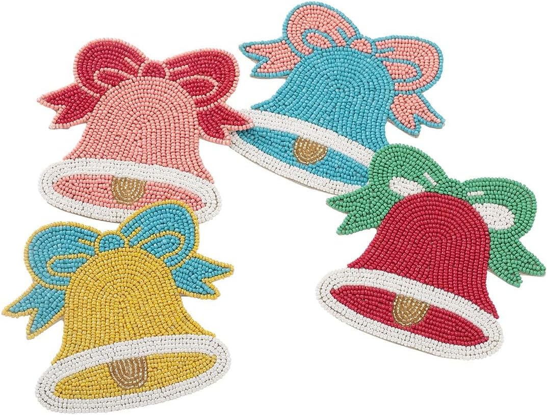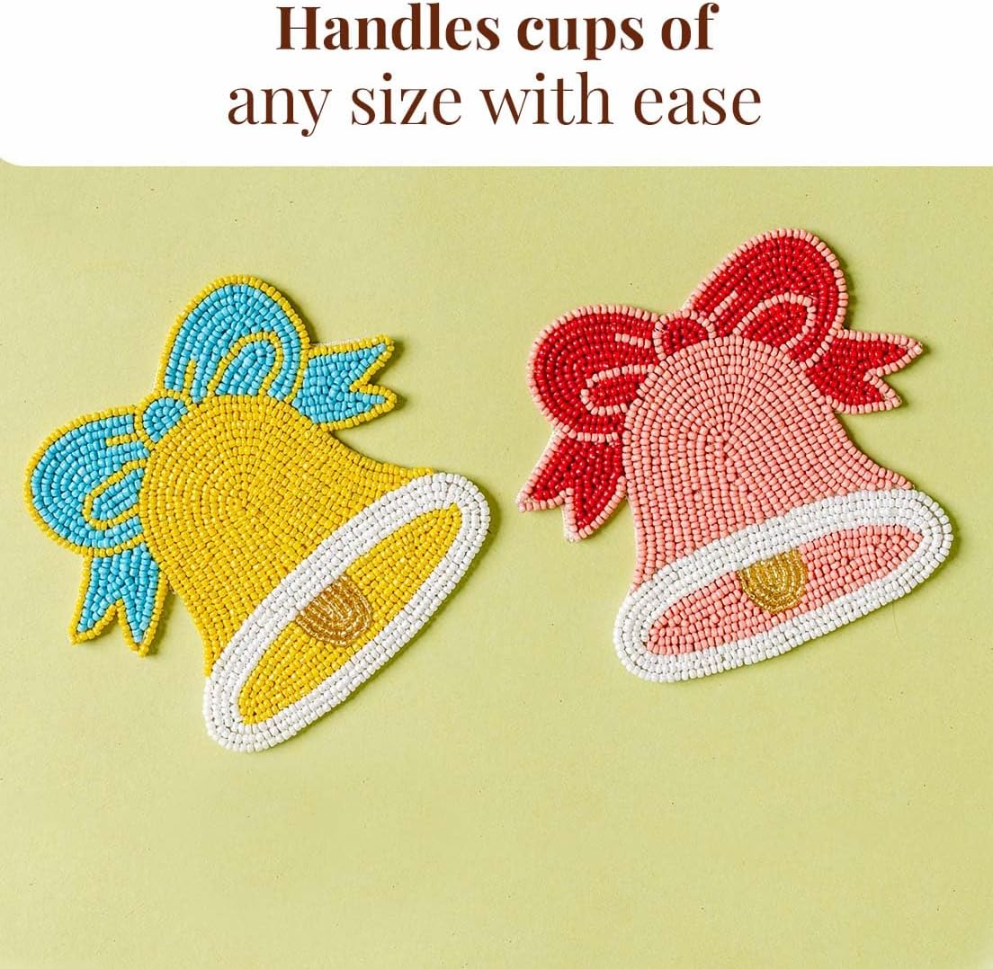 Folkulture Christmas Coasters Set of 4 (4") Merry Bell Coaster for Christmas Table | Cute Holiday Coasters for Christmas Décor Gifts for Women