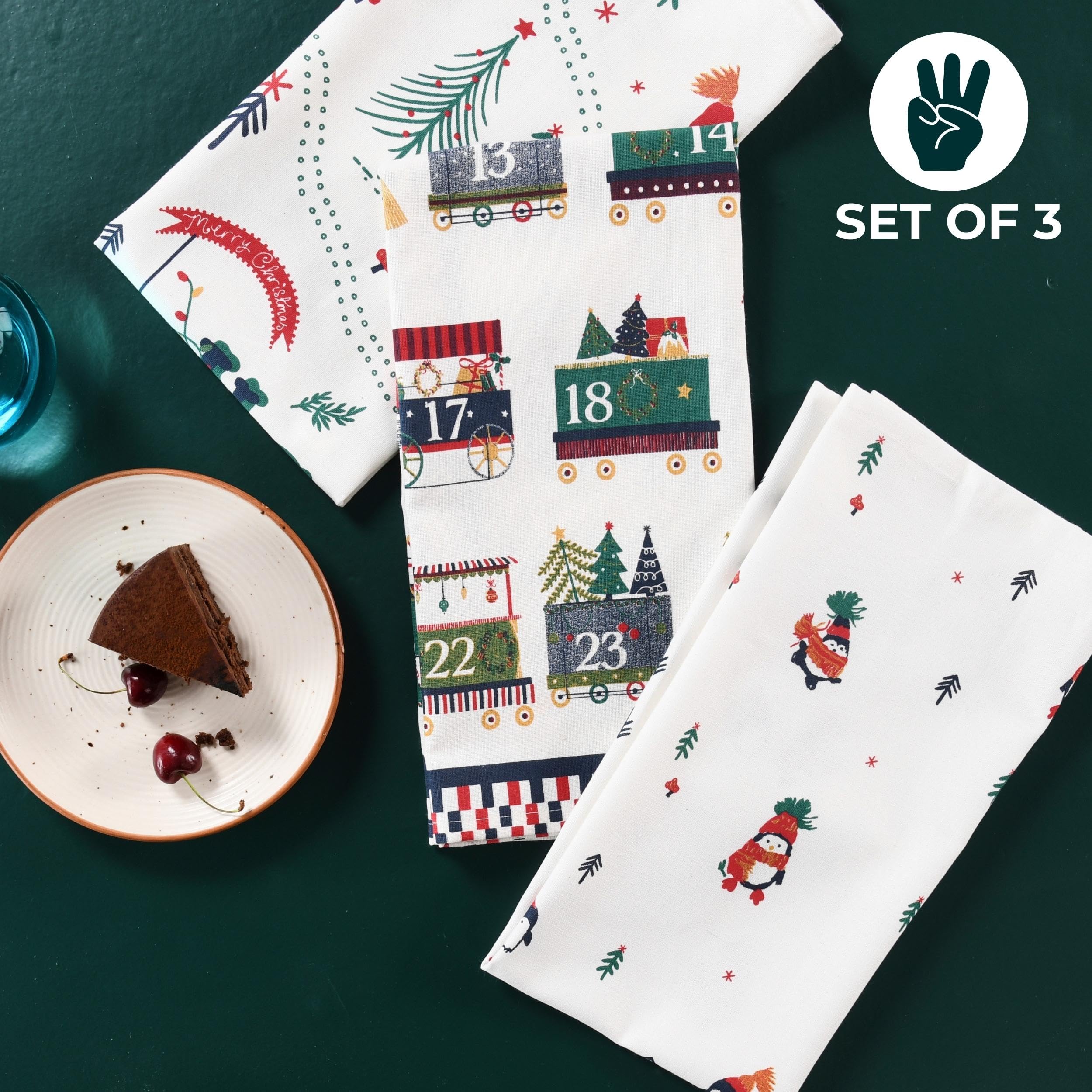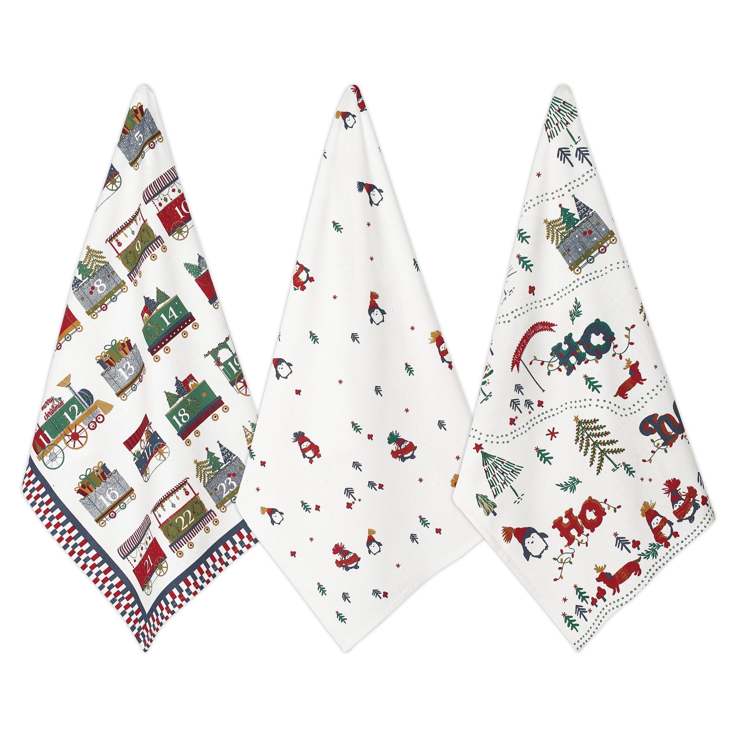 Folkulture 20" X 26" Set of 3 Kitchen Towel Cotton - Xmas Train Advent
