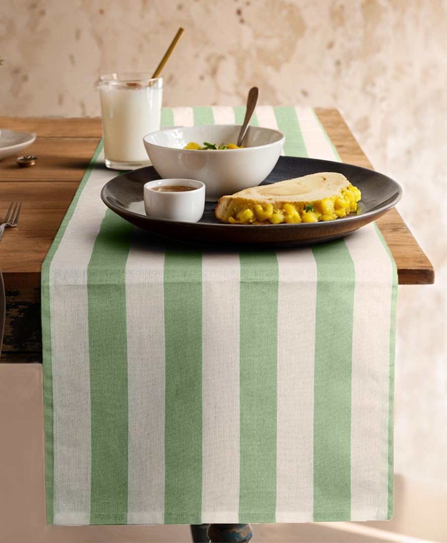Folkulture Christmas Table Runners Striped Boho Table Runners for Christmas Decor | White & Green Table Runner for Christmas Decor
