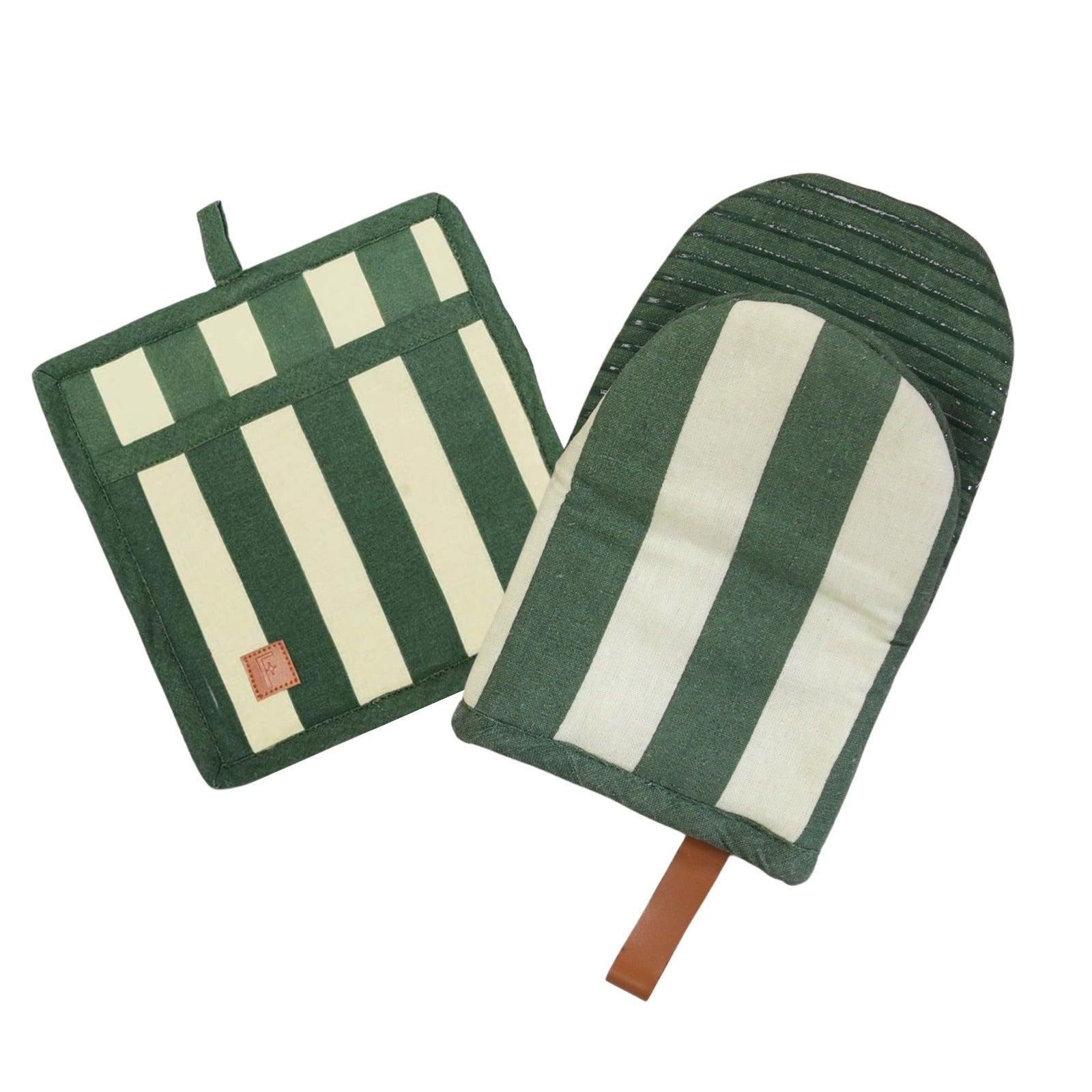 Folkulture Singles Matcha Mini Mitt & Potholder | 100% Cotton with Non-Slip Silicone Grip | Heat Resistant Oven Mitt Set | Durable & Washable - Matcha
