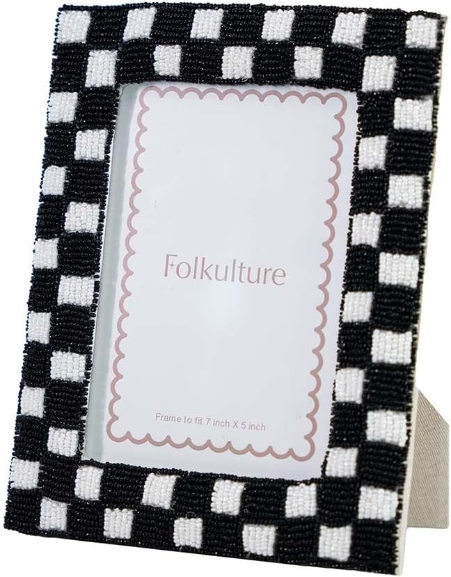 Folkulture 5x7 Picture Frames, Checkered Photo Frame with Plexiglass, Vertical and Horizontal Formats Picture Frames, Farmhouse Decor (Black)