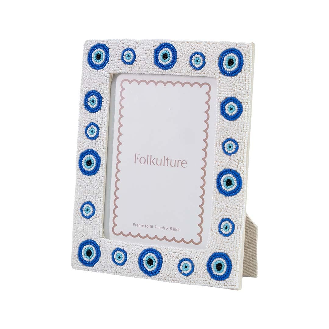 Folkulture Evil Eye Picture Frames with Plexiglass, Vertical & Horizontal Formats Picture Frames, Wall Hanging or Tabletop Farmhouse Picture Frame