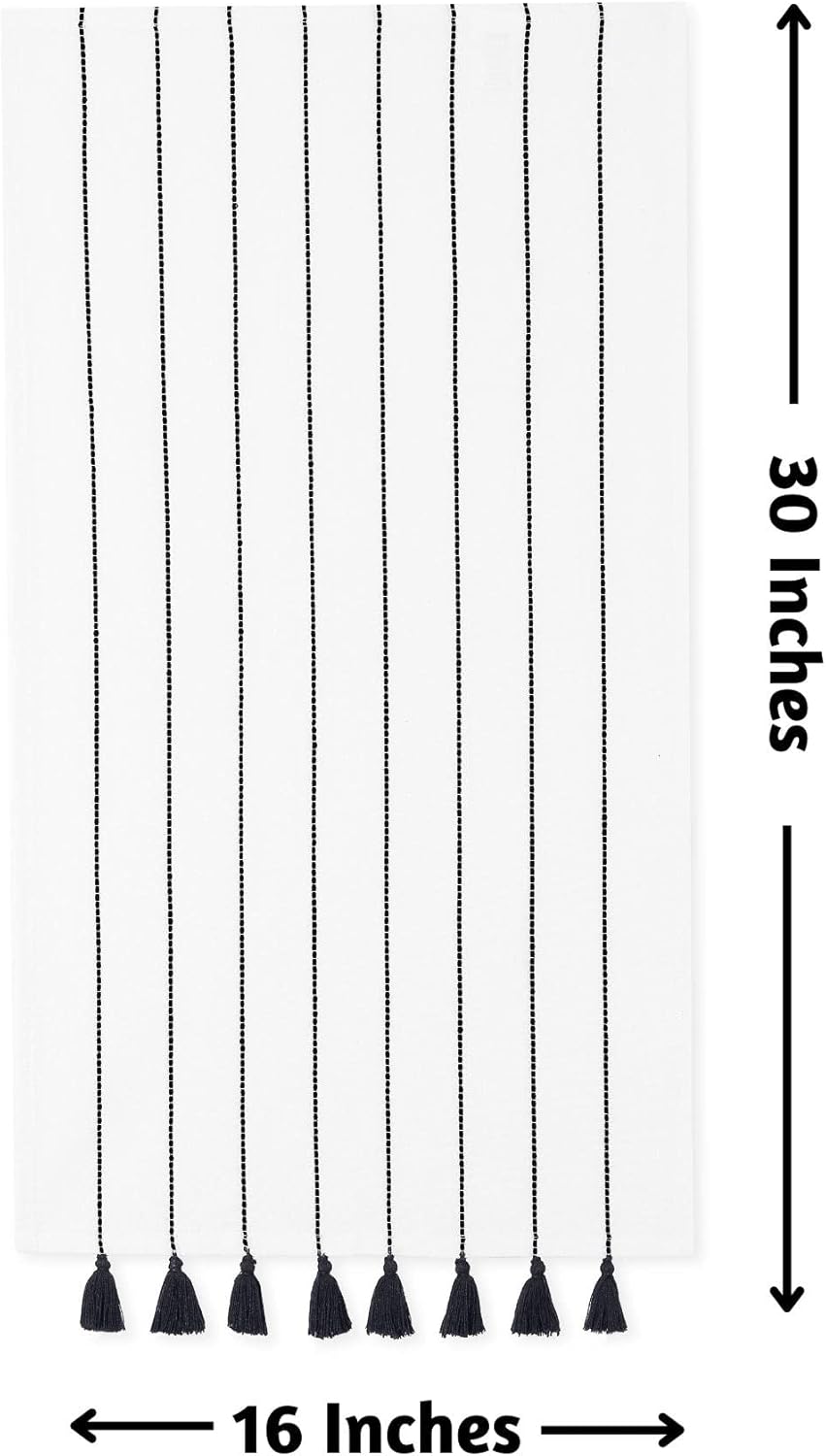 Folkulture Hand Towels for Bathroom, Set of 2 (16" x 30"), 100% Cotton Hanging Towels for Bathroom with Tassels (Hamilton Black & White)