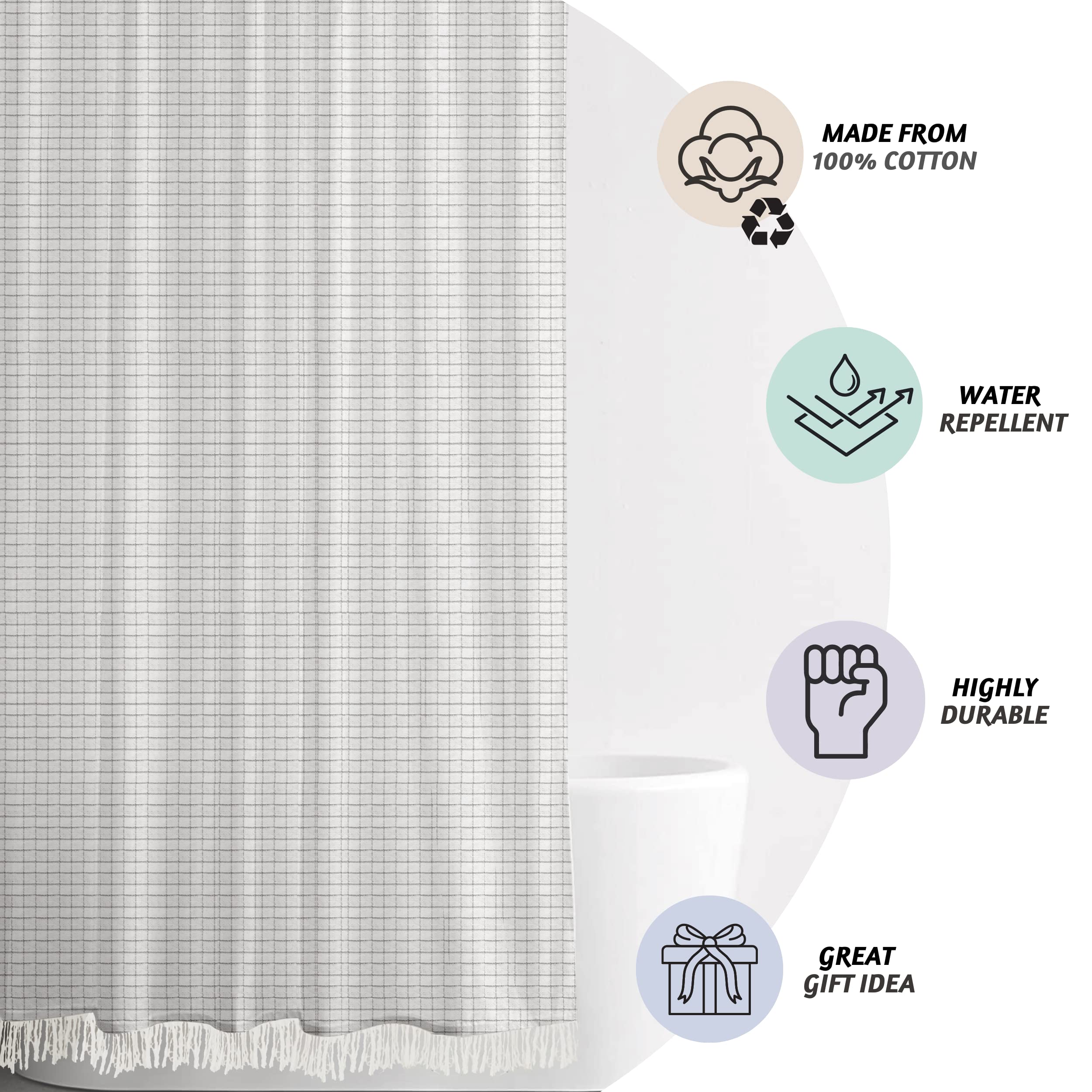 Folkulture Boho Shower Curtain 72" X 72" Water Repellent White Shower Curtain with Tassels, Grey Shower Curtains Recycled Cotton (Tulum Gray)