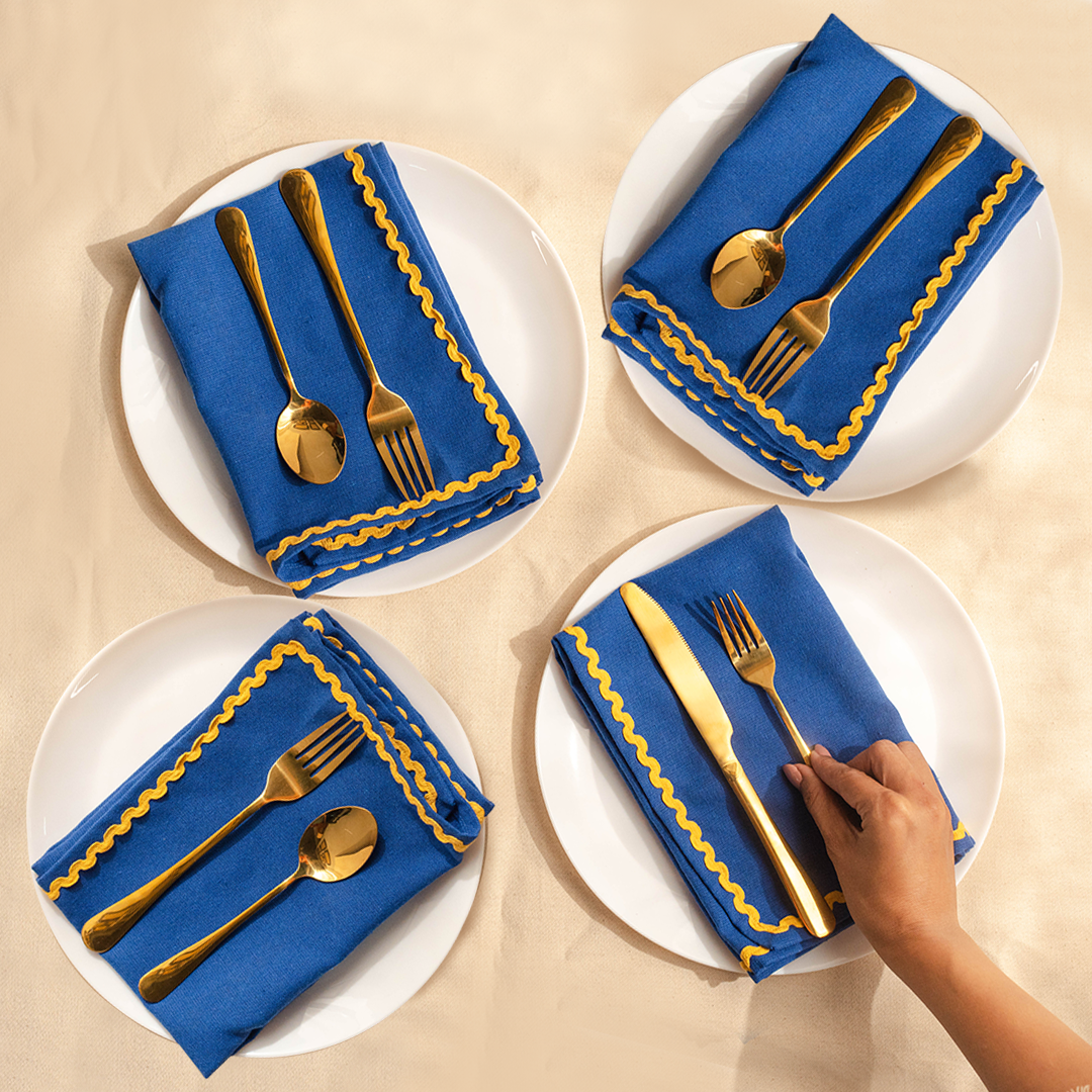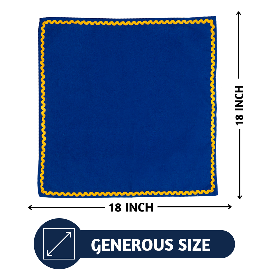 Folkulture Cloth Napkins, Set of 4 (18" x 18") Blue Cloth Napkins for Dining Table, Rick Rack Napkins for Kitchen, Table Linens Washable for Parties