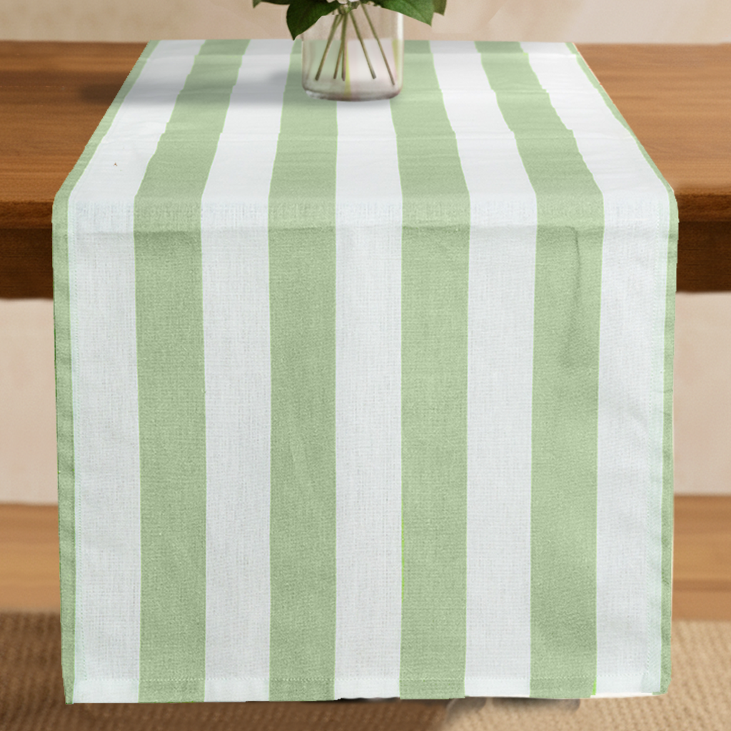 Folkulture Fall Table Runners Striped Boho Table Runners for Farmhouse Decor | White & Green Table Runner for Fall Decor