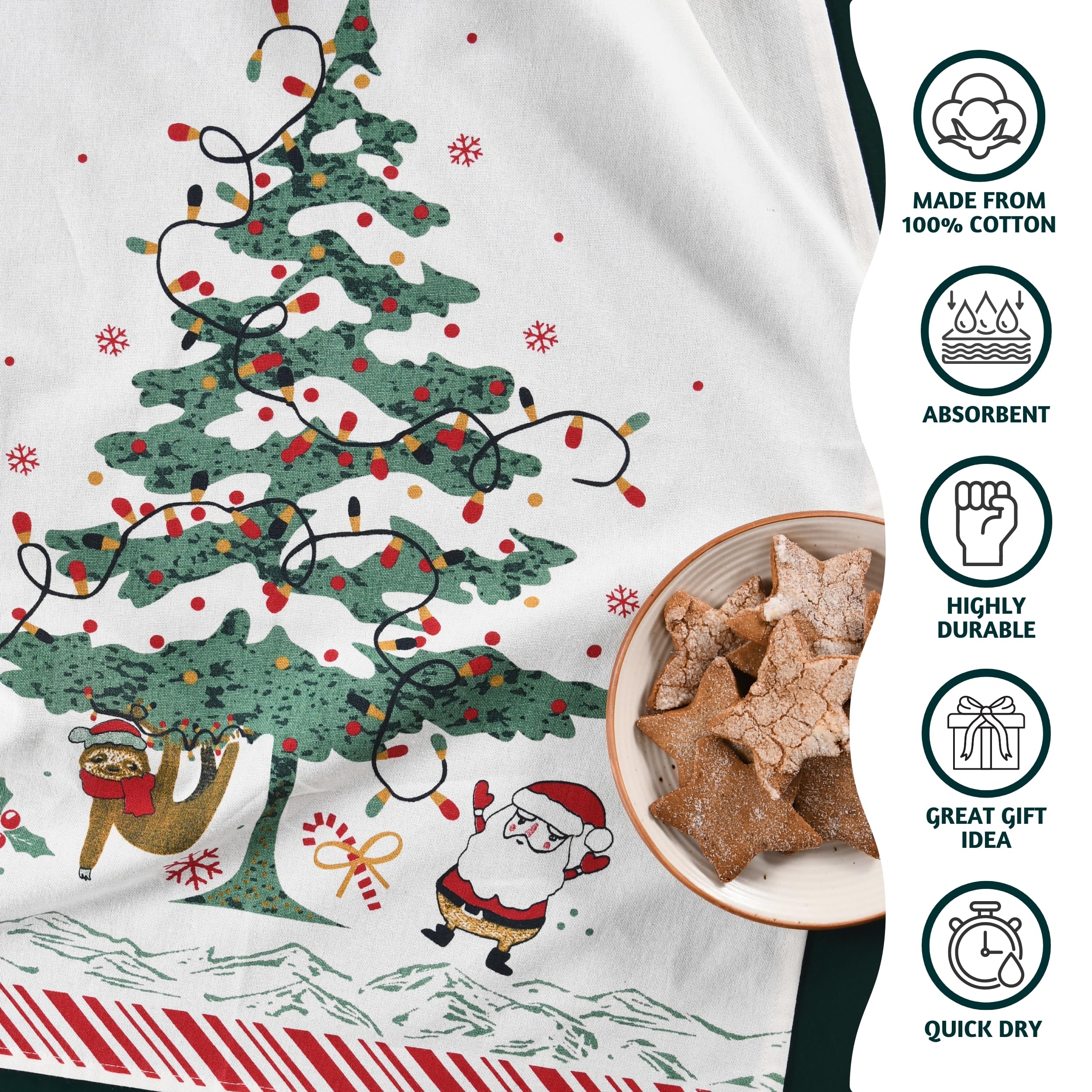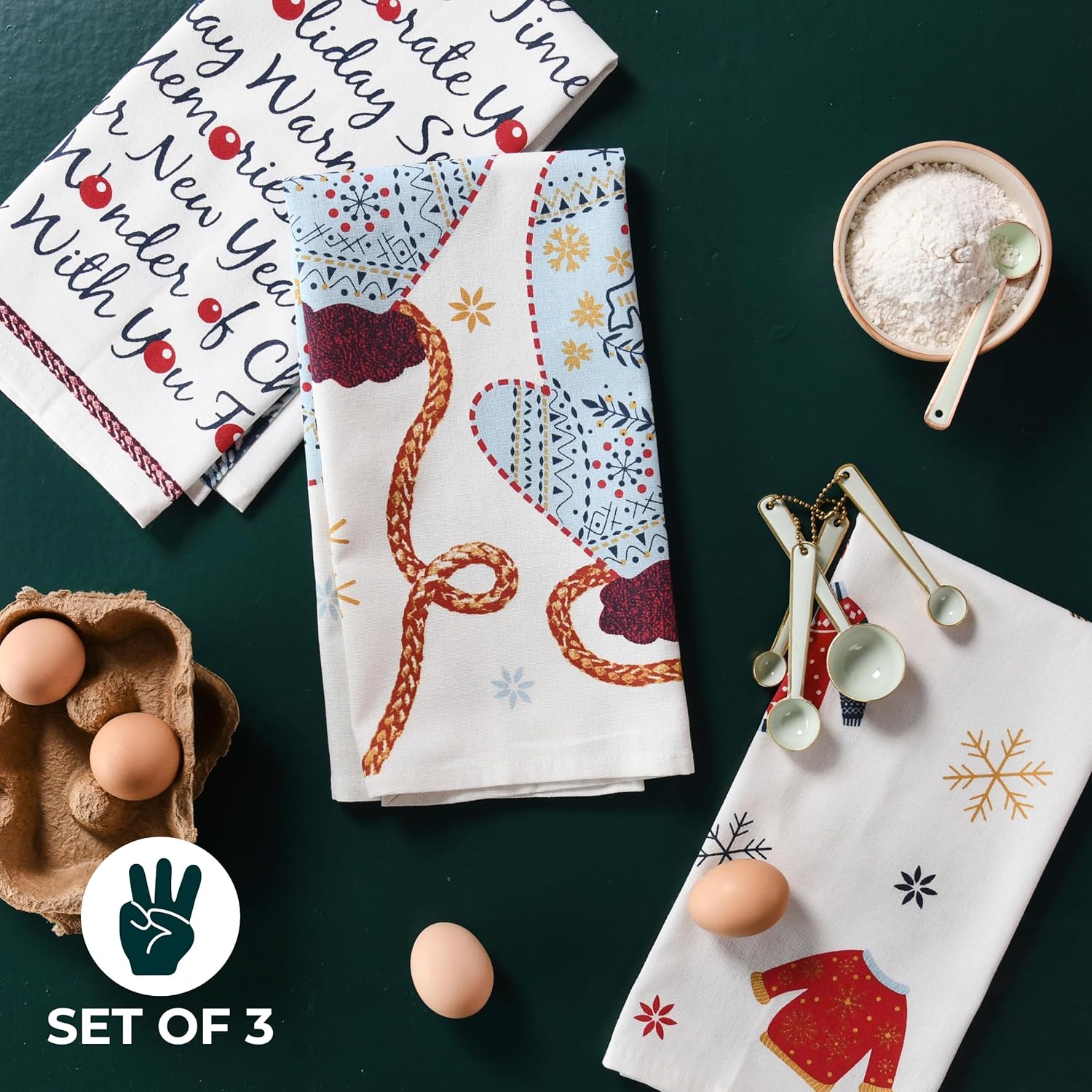 Folkulture Christmas Kitchen Towels Set of 3 for Christmas Decorations Theme, 26x20 Farmhouse Dish Towels or Tea Towels for Decor, Cotton Decorative Hand Towel, Boho Dishcloths Sets for Baking Gifts