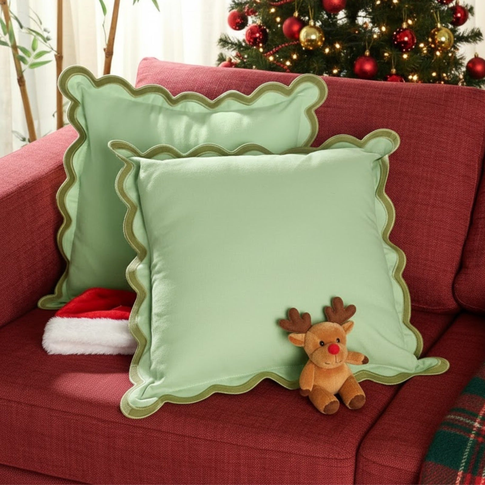 Set of 2 Throw Pillow Cover Scallop Embroidery Oasis 18 x 18 - Forest Sage