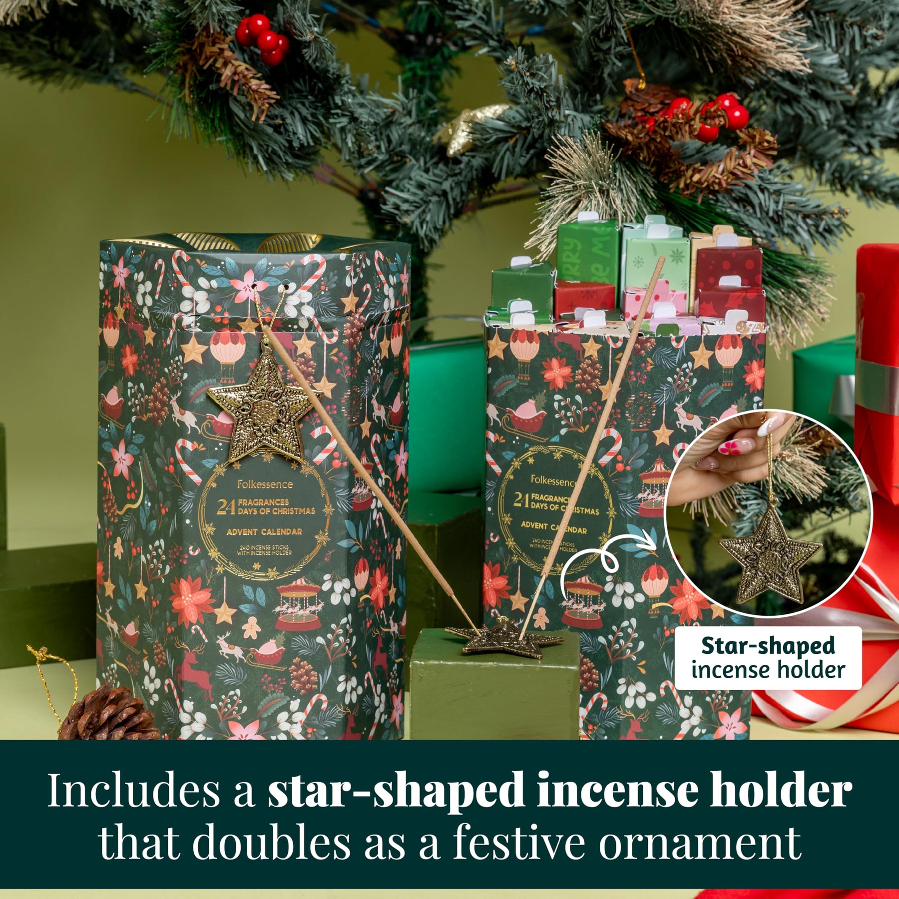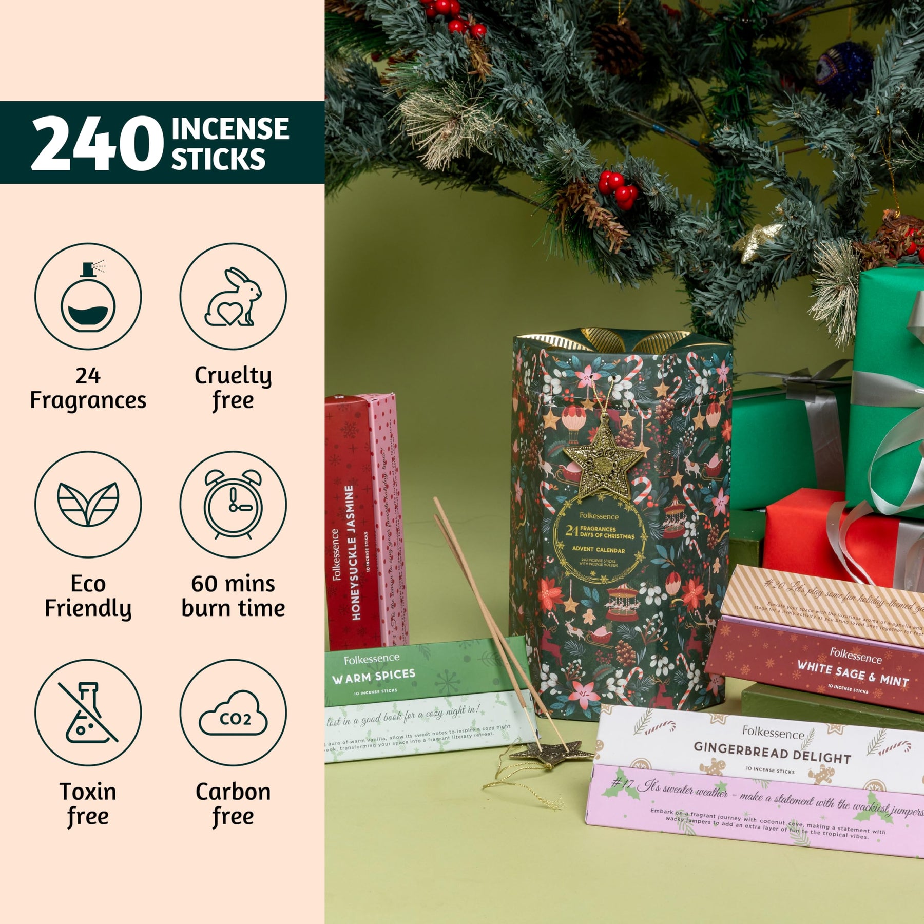Celebrate the joy of the season with the Folkulture Christmas Advent Calendar 2025, a luxurious countdown featuring 24 organic, non-toxic incense sticks that fill your home with soothing holiday fragrances. Each day unveils a new festive aroma from warm cinnamon and cozy pine to sweet vanilla creating a calming and joyful ambiance as you approach Christmas. Beautifully packaged in a premium holiday gift box, this slow-burning incense set makes a thoughtful Christmas gift for women, friends, and family who love home fragrance and festive decor. Crafted from natural ingredients for a clean, long-lasting burn, these incense sticks offer a touch of aromatherapy bliss that promotes relaxation and warmth throughout the season. Perfect for holiday gifting, home decor, or self-care, this elegant advent calendar transforms every December day into a moment of serenity and celebration.