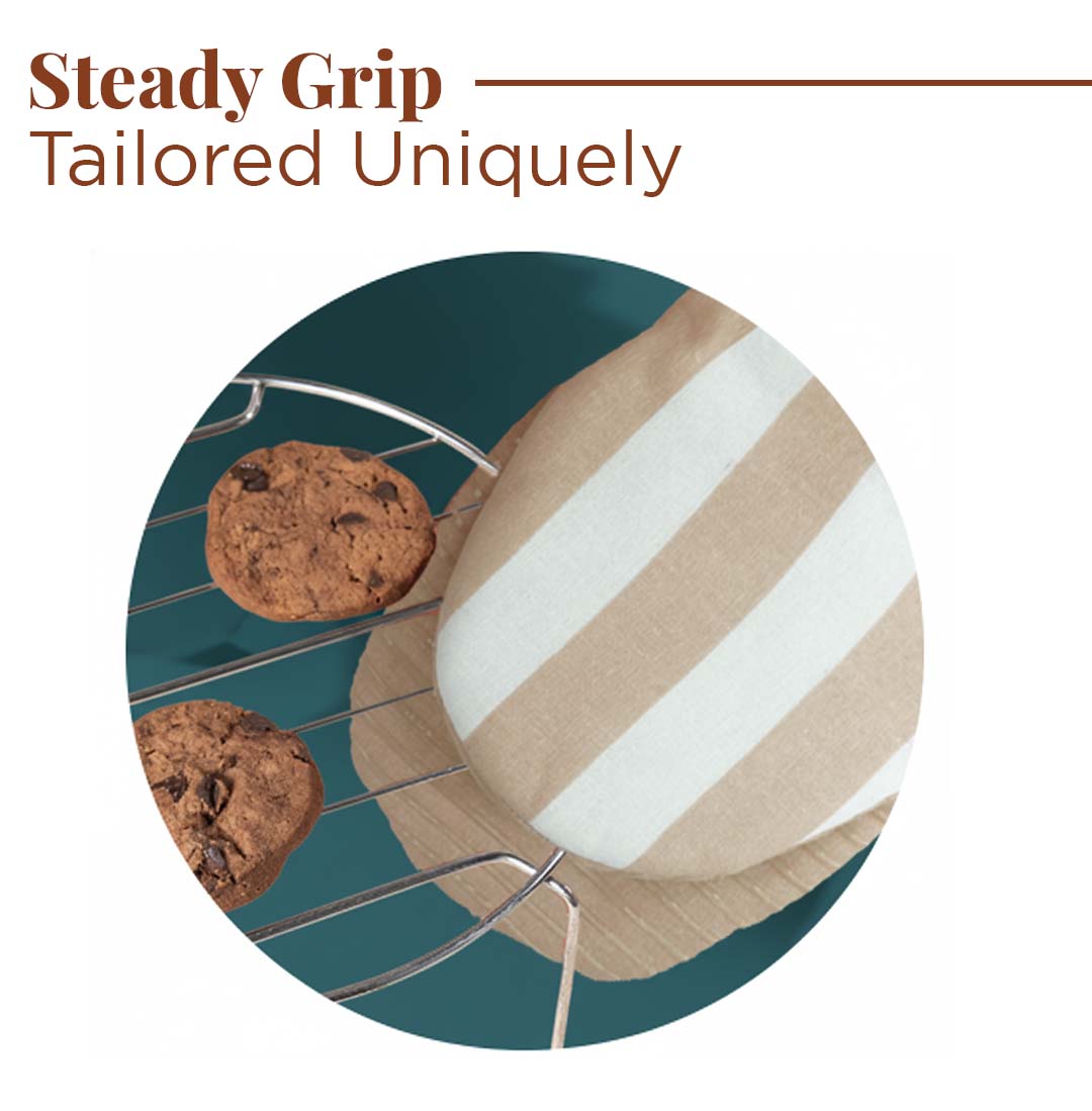 Mini Mitts 100% cotton with Silicon - latte Bring comfort, style, and safety to your everyday cooking with the Folkulture Mini Oven Mitts in the soothing Latte shade. Made from 100% premium cotton and lined with a non-slip silicone grip, these compact mitts offer excellent control while handling hot pans, pots, and baking trays. Their heat-resistant design helps protect your hands from temperatures up to 500°F, making them perfect for baking, grilling, cooking, or using appliances like microwaves, air fryers, and ovens. Designed with strong stitching and durable fabric, these mitts are washable, reusable, and long-lasting making them an eco-conscious addition to your kitchen. The soft neutral Latte colour blends effortlessly with any kitchen décor, giving your space a warm and minimal aesthetic. Compact, functional, and stylish, these mini mitts also make a thoughtful gift for housewarmings, birthdays, festive celebrations, or anyone who loves to cook and host. A daily essential you’ll reach for again and again.