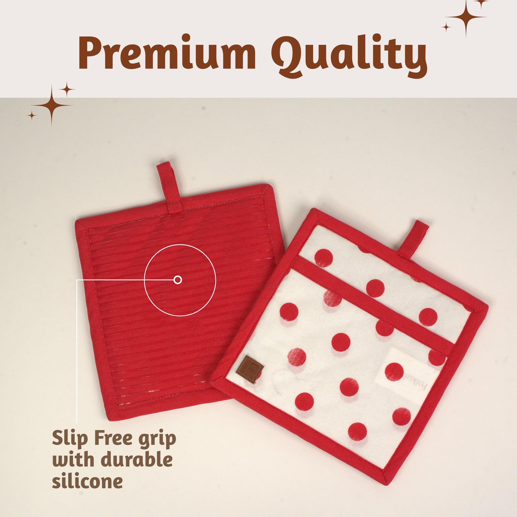 Add a touch of style and safety to your kitchen with the Folkulture Pot Holders for Kitchen a pack of two 8x8 inch ribbed soft silicone hot pads crafted for both beauty and functionality. Made from 100% cotton with a non-slip silicone grip, these pot holders offer a secure hold on hot cookware, keeping your hands safe from accidental slips and burns. Their heat-resistant design makes them perfect for handling scorching pots, pans, and baking dishes, while also doubling as trivets to protect your countertops from heat damage. Built to last and machine washable, these durable pot holders are both practical and stylish, blending seamlessly with your fall kitchen décor or Thanksgiving setup. Whether you’re cooking, baking, or entertaining, this charming and functional set is a daily kitchen essential and a thoughtful gift for anyone who loves to cook the perfect mix of warmth, safety, and seasonal charm